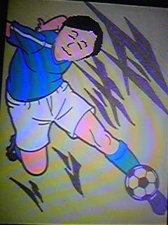 夫が勧められた仕事でサッカー選手に挑戦している絵。