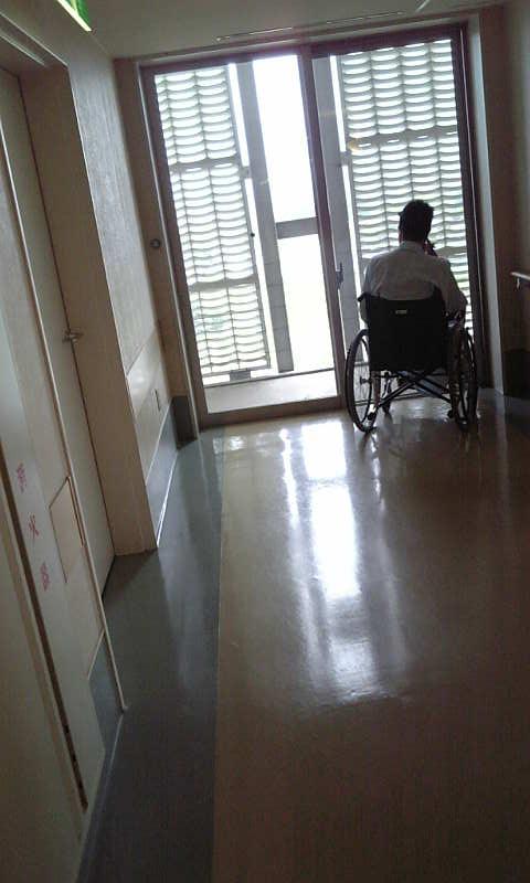 車椅子を借りてきて廊下まで押して行ってやった。