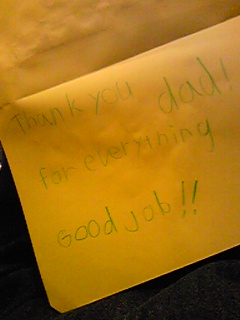 小坊は、先日の塾の英会話の授業でdadに書いたお手紙をプレゼントした。
