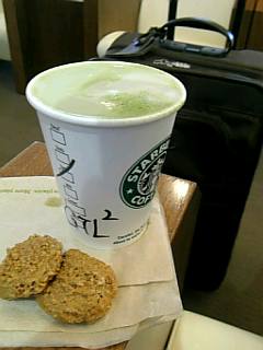 コーヒーを飲みたいところだが、実は家出る直前にお腹を壊してしまい、お腹に優しい抹茶ラテ(ノンシロップ)をオーダー。